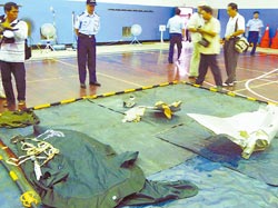 巡防艇率先抵達失事地點,發(fā)現(xiàn)海面上泛浮著大片油漬,隨即又看見太陽照映金屬的反射光,于是登上草嶼,尋獲包括未使用過塑料求生艇、駕駛座椅后背墊、疑似機翼、機身蒙皮等大小十多件殘骸,最大件殘骸長寬各約1米。