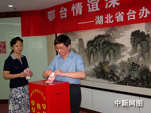 連日來,臺(tái)灣災(zāi)情牽動(dòng)著大陸同胞的心,各界紛紛伸出援手。8月20日下午,湖北省臺(tái)辦舉行向臺(tái)灣災(zāi)區(qū)捐款儀式,省臺(tái)辦機(jī)關(guān)捐出20萬元人民幣,省臺(tái)辦機(jī)關(guān)工作人員現(xiàn)場(chǎng)捐款1.4萬元。截至20日下午,湖北各界對(duì)臺(tái)灣災(zāi)區(qū)捐款已近2000萬元人民幣。