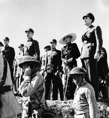 軍校官佐的步兵方隊走過來了。接著,炮兵方隊轟隆隆地開過來。蔣介石好像什么事也沒有發(fā)生,又抖擻起精神。就在這時,一臺加農(nóng)炮車在“中正”臺前停住不動了。蔣介石頓時出了一身冷汗。馬上,10多名衛(wèi)士手提長短槍沖向炮車,幾名貼身警衛(wèi)靠向蔣介石的兩側(cè)。