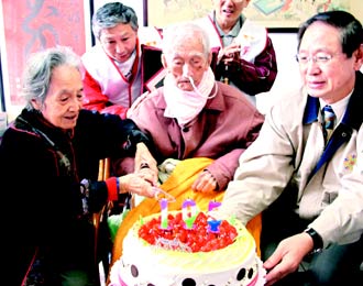 據(jù)臺灣《聯(lián)合報》報道,臺灣桃園榮民服務(wù)處長張占魁昨天偕志工為王邁夫祝壽,當熊長貞看著插著鼻胃管的老伴說出“來世再做夫妻”時,每人都動容。