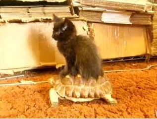 據(jù)臺灣“今日新聞”消息,近來有只黑色小貓也因?yàn)椤板摭敗倍呒t,在視頻中,小貓一屁股坐在巨大的烏龜背上,一起在客廳里緩緩前進(jìn)。小貓還不時還會低頭看烏龜一眼,也不嫌速度慢,轉(zhuǎn)個身又繼續(xù)悠悠哉哉地“兜風(fēng)”,可愛的模樣引發(fā)網(wǎng)友關(guān)注,讓點(diǎn)擊率一口氣爆增數(shù)萬,至23日止已經(jīng)超過21萬人次觀看。