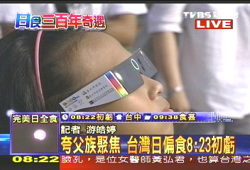 一大早,臺(tái)灣島內(nèi)的電視臺(tái)就開(kāi)始通過(guò)直播報(bào)道,外派記者紛紛從成都、重慶、武漢、杭州等地發(fā)回報(bào)道,島內(nèi)觀眾通過(guò)第一時(shí)間如臨現(xiàn)場(chǎng)欣賞到日全食盛況。