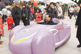 國(guó)際燃料電池車觀摩會(huì)昨天在自然科學(xué)博物館舉辦,臺(tái)中市長(zhǎng)胡志強(qiáng)當(dāng)場(chǎng)允諾明年將于水湳機(jī)場(chǎng)舉辦國(guó)際氫能車大賽,屆時(shí)將由明道大學(xué)規(guī)劃、市府全力支持;讓明道校長(zhǎng)汪大永感動(dòng)地說:“這真是最好的禮物”。