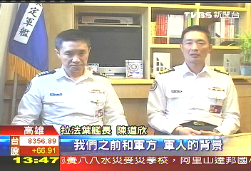 拉法葉艦長(zhǎng)陳道欣:“我們之前和軍方、軍人的背景,可以說(shuō)一點(diǎn)淵源都沒(méi),但是道輝首先加入“中正預(yù)!。”