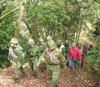 軍方和警義消昨天動員700人力兵分六路,搜尋嘉義縣大埔鄉(xiāng)的農(nóng)義農(nóng)場與開元農(nóng)場、高雄縣那瑪夏鄉(xiāng)的二溪山、表湖與卓武山、飛機最后雷達(dá)光點消失位置的老人溪十四號橋?哲娨渤鰟邮患艽沃鄙龣C貼地搜尋,可惜一無所獲。