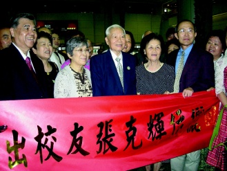 在三弟張有信、四弟張有衛(wèi)、小妹張紫微等親人以及大甲鎮(zhèn)瀾宮顏清標(biāo)之子顏寬恒、“總統(tǒng)府國策顧問”許文彬和彰商校友會等人迎接下,張克輝和夫人紀(jì)慧瑜中午時(shí)分一踏進(jìn)桃園機(jī)場入境大廳,即受到熱烈的歡迎。