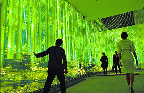 臺北館館長陳慶安說,參觀者在臺北館360度3D劇院里,戴上3D眼鏡即可“身歷其境體驗臺北人的一天”,從清晨魚市場魚販叫賣開場,捷運族趕上班、誠品書店看書、到逛士林夜市美食。未來劇院則播出無線寬帶案例,未來臺北影片描述阿公出游、手上戴著偵測器,突發(fā)血壓異常,經(jīng)無線傳輸通知家人。