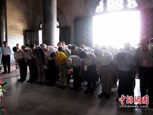 今日的南京睛空萬里,艷陽高照。兩岸退役將軍們平均年齡已近古稀,許多都已是耄耋之年的老人,沿著392級臺階而上,揮汗如雨卻不輕言退卻。累了,彼此攙扶著堅持登階而上。最終40余位將軍在孫中山坐像前共同三鞠躬。