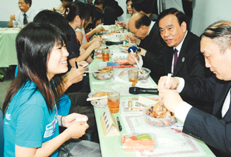 中新網(wǎng)6月11日電 據(jù)臺(tái)灣《聯(lián)合報(bào)》報(bào)道,浙江省長(zhǎng)呂祖善昨天到臺(tái)大校園參訪,并與臺(tái)大學(xué)生共進(jìn)午餐,他主動(dòng)邀請(qǐng)一百五十名臺(tái)大學(xué)生到浙江游學(xué),希望兩岸學(xué)生的交流能更緊密。