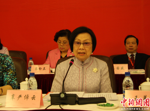作為臺(tái)灣婦女社團(tuán)領(lǐng)袖,辜嚴(yán)倬云以臺(tái)灣中華婦女聯(lián)合會(huì)主任委員身份,20日下午出席兩岸婦女交流活動(dòng)暨海峽婦女論壇開幕式。