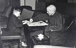 中新網(wǎng)6月3日電 據(jù)臺(tái)灣《旺報(bào)》報(bào)道,1954年,一幅拍攝于蔣介石和二孫孝武在士林官邸下西洋跳棋的照片,獲選國際攝影展覽人像第一獎(jiǎng)。這不是因?yàn)樗鼇碜耘_(tái)灣的“第一家庭”,應(yīng)是其中自然流露的祖孫同樂親情。