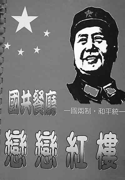 我在金門旅游時,幾位年輕的郵友帶我來到金門老街。這條老街據(jù)說已經(jīng)有幾百年的歷史了,大部分店鋪都保存著原有的風(fēng)貌。這些店鋪主要經(jīng)營當(dāng)?shù)氐耐撂禺a(chǎn),比如金門貢糖、金門高粱酒、金門牛肉干、金門陳皮果,還有金門菜刀等,店鋪也像古代的酒店一樣,旗幡當(dāng)街飄揚(yáng),兩旁一盆盆的鮮花清香四溢,酒香花美,街道中央不時能看到百年的榕樹,盤根錯節(jié)。海風(fēng)陣陣,這真是濤聲依舊,又見千年的滄桑,百年的風(fēng)雨,令人心曠神怡,不知今夕何夕。信步走來,我們想找個地方歇歇腳,喝喝咖啡。抬頭一看,前面“國共餐廳”4個大字極為醒目,紅旗飄揚(yáng),“走進(jìn)新時代”的歌聲清脆悅耳。我想:此時竟在何方,難道我們現(xiàn)在是在大陸嗎?難道國共雙方的代表曾在這里見過面嗎?我們帶著好奇心走進(jìn)了餐廳,美麗的小姐說著流利的普通話,熱情地歡迎我們,請我們?nèi)胱,為我們沏茶,而且馬上遞給我們一個菜譜。這菜譜一看,全是紅色,著軍裝的毛澤東像赫然在目,還有“一國兩制,和平統(tǒng)一”的口號,還印著五星紅旗。打開菜譜一看,有不少大陸的名菜,也有毛澤東喜歡吃的紅燒肉、臭豆腐,真是令人激動!