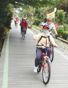 “體委會(huì)”運(yùn)動(dòng)設(shè)施處處長胡啟邦說,臺(tái)東的自行車道規(guī)劃完善,以臺(tái)東山海鐵馬道為例,利用廢棄鐵道改成枕木自行車道,還串聯(lián)臺(tái)東市森林公園、海濱公園、利吉惡地等知名風(fēng)景區(qū),沿途山、海、河景及稻田盡收眼底!霸谂_(tái)東騎單車是件很舒服的事!”這也是“體委會(huì)”選擇在臺(tái)東舉辦研習(xí)的主因。