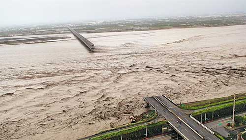 重災(zāi)區(qū)屏東縣沿海的佳冬、林邊鄉(xiāng)淹水最嚴(yán)重,佳冬昨緊急撤離4000名村民。山區(qū)來義鄉(xiāng)義林村有土石流危機(jī),經(jīng)以直升機(jī)撤離200名村民。臺東縣知本溫泉區(qū)則是路斷屋垮、猶如死城,區(qū)內(nèi)老字號金帥大飯店因?yàn)橹鞠谭罎⒌,路基遭淘空,帶著轟隆巨響倒落知本溪。南投縣因濁水溪暴漲,昨清晨淘空臺16線水里、集集路段的路基,造成路面坍塌,當(dāng)時(shí)有5輛車行經(jīng)斷路,共8人掉落溪里。嘉義梅山鄉(xiāng)太和村有10戶民宅遭土石掩埋、4人恐遭活埋。另水里新山村15戶居民房屋遭洪水沖毀,130多名住戶被迫疏散,“全村幾近滅村了!贝彘L林美玲悲痛地說。