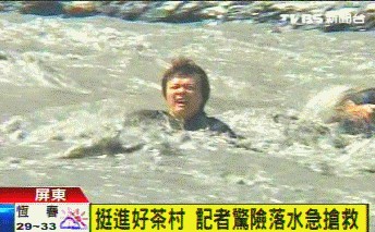 中新網(wǎng)8月17日電 據(jù)臺(tái)灣TVBS報(bào)道,屏東“好茶村”在風(fēng)災(zāi)中受重創(chuàng),多位記者隨村民挺進(jìn)家園,希望能為外界報(bào)道受災(zāi)情況,沒(méi)想到在橫渡“隘寮溪”時(shí),一名攝影記者不小心被大水沖走,情況非常驚險(xiǎn),還好好茶村民經(jīng)驗(yàn)豐富,立刻到下游淺水處一把拉住這名記者,人平安無(wú)事,但他手中緊握不放的攝影機(jī)卻毀了。