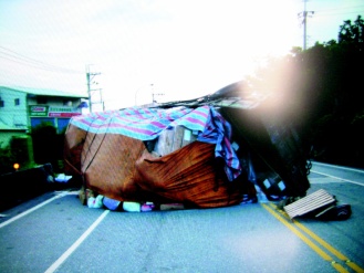 中新網(wǎng)8月24日電 據(jù)臺灣《聯(lián)合報》報道,一輛載滿賑災(zāi)物資準(zhǔn)備送到臺東縣太麻里的大貨車,二十三日清晨行經(jīng)花蓮縣富里鄉(xiāng)臺九省道時翻覆,貨車司機(jī)余正輝當(dāng)場死亡,隨車助理林清華輕傷。警方抽血檢測,懷疑余正輝酒后駕車,車速過快才發(fā)生意外。