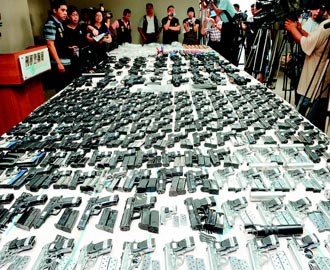 這批槍械昨天在警方的打擊犯罪中心一字排開,有如軍火展示,計有181支槍、22600多發(fā)子彈及6枚槍榴彈,還有一個用于狙擊的隱藏皮箱,其中不乏暗殺、狙擊、突擊等專用槍械。