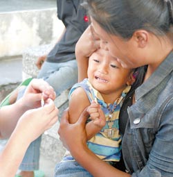 臺南縣南化鄉(xiāng)羌黃坑部落二十四戶災(zāi)民得知可優(yōu)先免費施打疫苗,反應(yīng)不一;老人家樂意施打,年輕人多半覺得可有可無或拒絕施打。“疾管局”表示,昨天因故未能接種的災(zāi)民,日后仍可到衛(wèi)生所優(yōu)先接種。