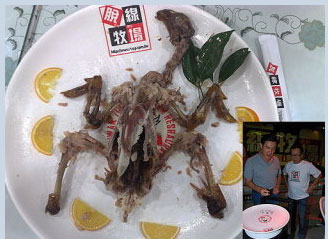 據(jù)臺(tái)灣TVBS 報(bào)道,“馬英九吃過的桶仔雞”?這只雞整只被啃得干干凈凈,只剩下骨架,十足展現(xiàn)馬英九節(jié)能減炭、愛物惜物的特色,來源無庸置疑,只是這雞怎么會(huì)落入賣家手中。