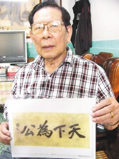 “今年七月,吳伯雄在北京湖廣會館一席話,我聽了很感動,決定把家族珍藏多年的孫中山先生‘天下為公’真跡,送返國民黨創(chuàng)黨起源地”。陶可望說,他是老國民黨員,“天下為公”是孫中山在北京湖廣會館所寫,就該由國民黨送返原地。