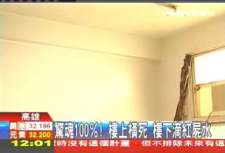 據(jù)臺(tái)灣TVBS電視臺(tái)報(bào)道,高雄縣一名女子這幾天發(fā)現(xiàn)墻角天花板流出暗紅色、有臭味的水。報(bào)警后,警方到公寓3樓開門,才發(fā)現(xiàn)在房間里有一具發(fā)黑浮腫的男尸倒臥床上,尸水滲出棉被流到地板再滲進(jìn)樓下房間,驚悚情景猶如恐怖電影情節(jié)。