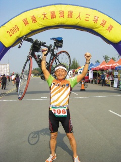 張炳榮昨天參加屏東東港大鵬灣51.5公里全臺鐵人三項(xiàng)競賽,先游泳1.5公里,再騎自由車40公里,最后跑10公里,3小時7分的成績完成比賽。超級鐵人三項(xiàng)協(xié)會被他的毅力和精神感動,昨天頒給他榮譽(yù)VIP獎。
