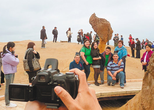 據(jù)臺灣聯(lián)合報報道,新空間國際公司總經(jīng)理楊景謙表示,野柳地質(zhì)公園這一年游客量暴增,上月入園人數(shù)破百萬,創(chuàng)十年來的新高,非島內(nèi)人士中有75%是陸客,約35萬人。