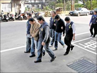 警方昨天兵分八路,分別在桃園、龍?zhí)、大溪?zhèn)拘提主嫌、集團(tuán)成員到案,查扣本票、微量毒品、棍棒等證物,但并未起出槍械。