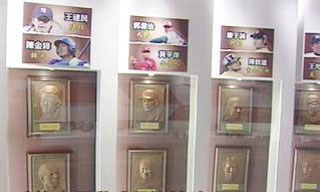 據(jù)悉,在臺北縣新莊棒球場,陳列了由臺北縣民眾投票選出的10大棒球名人,還特別做了一比一的仿銅雕塑肖像。