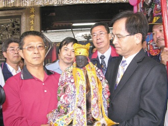 中新網(wǎng)4月16日電 據(jù)臺灣《聯(lián)合報》報道,臺南縣學(xué)甲慈濟(jì)宮開基保生二大帝安南巡禮活動,昨天上午由縣長蘇煥智與慈濟(jì)宮董事長周尚德扶轎起駕,駐蹕臺南市安南區(qū)中洲寮保安宮,今天上午6時出發(fā)繞境。