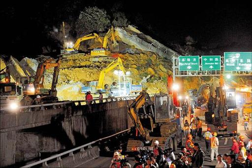 由于土石量太大,總重超過20萬噸,臺(tái)灣“高速公路局長”曾大仁表示,將全面搶修,希望兩周內(nèi)清理完土石,搶通可能需20日以上;不過軍方搶救人員昨晚接到軍方高層最新指令,要求一周內(nèi)全力搶通。