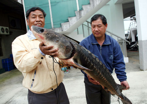 金門縣水試所說(shuō),發(fā)現(xiàn)的中華鱘,是在昨天下午由呂姓漁民在南海域新湖漁港布網(wǎng)捕獲,已經(jīng)氣息奄奄,由于長(zhǎng)相怪異,漁民向金門縣水試所通報(bào),經(jīng)養(yǎng)殖課長(zhǎng)柯逢樟等前往了解,證實(shí)為大陸的一級(jí)保護(hù)動(dòng)物中華鱘。
