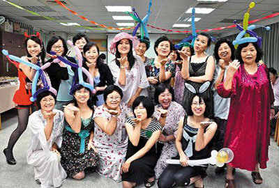 成立12年的高雄市立社教館綠茵讀書會,26位會員清一色是女性,年齡從30歲辣媽到60歲辣阿嬤都有。會長連秀敏說,為舉辦另類學習慶生會活動,大家決定瘋一下創(chuàng)意,睡衣性感搖滾不是藝人名模專利,有自信、夠精彩的讀書會辣媽、辣嬤們,也可以“穿出創(chuàng)意,樂活人生”。
