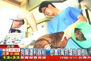 中新網(wǎng)4月30日電 據(jù)臺灣TVBS報(bào)道,臺灣又現(xiàn)虐待動物變態(tài),一只虎斑狗的后腿上方,被人用斧頭之類的利器削掉,傷口面積非常大,內(nèi)臟外露嚴(yán)重感染,幸好被一名好心愛狗人士發(fā)現(xiàn),送狗去治療,但狗狗仍有生命危險(xiǎn),動物救援小組志工痛斥虐狗,并懸賞5萬元(新臺幣,下同)請民眾幫忙提供線索,揪出虐狗變態(tài)。
