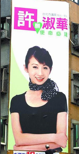 中新網(wǎng)5月19日電 據(jù)臺(tái)灣《蘋(píng)果日?qǐng)?bào)》報(bào)道,臺(tái)北市信義路、松仁路口的臺(tái)北市議員許淑華競(jìng)選廣告帆布廣告牌,于20多天前設(shè)立,因當(dāng)時(shí)晚上施工的人員未拆下帆布后方凸出鐵條,導(dǎo)致廣告上胸部位置有兩點(diǎn)凸起,造成“激凸”效果。