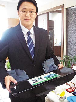 他的第一件發(fā)明作品“濾油功能盤(pán)”,為他贏得海外肯定,前年獲韓國(guó)首爾國(guó)際發(fā)明展金牌、去年獲得馬來(lái)西亞發(fā)明展銀牌。他笑說(shuō),一開(kāi)始是因?yàn)橛^察媽媽煮菜,總會(huì)在菜盤(pán)下方墊湯匙,好讓菜汁流到盤(pán)子另一頭,他就發(fā)想何不讓盤(pán)子變聰明?于是發(fā)明改良一款傾斜式盤(pán)子,食物盛在高處,湯汁順勢(shì)流到低處,吃東西即可避免吃到“油水”。