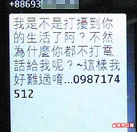 民眾藍(lán)先生昨日在臺北市議員李文英陪同下出面控訴,他十七歲兒子前天凌晨收到“為什么你都不打電話給我呢?這樣我好難過唷”短信,以為是同學(xué)而回?fù),翌日接獲電信業(yè)者通知暴增一萬八千多元通話費(fèi)。