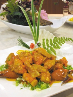 呂文芳首推10道經(jīng)典菜,其中幾近失傳的豆乳蟳,是早期文華莊出名的招牌菜,要讓苦瓜的苦味不滲入蟹肉里,卻又得讓豆腐乳的甘醇融于苦瓜與蟹肉中,還有手工菜菊花燕窩、旦黃大蝦、桂花魚(yú)翅等。過(guò)去北投各酒家的傳奇菜蓬萊排骨酥,是當(dāng)?shù)啬ν熊噷K椭粮骶萍业闹该戮撇,如今也再度重現(xiàn)。