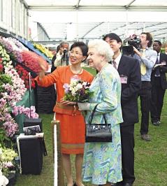 張小月也送上臺(tái)灣最新培育的品種“幸運(yùn)蘭”,讓女王相當(dāng)驚喜,當(dāng)場(chǎng)收下。女王堂妹亞歷山德拉公主、英國(guó)議員唐納荷、郝?tīng)柶,也到臺(tái)灣攤位前欣賞,盛贊臺(tái)灣蘭花美不勝收。