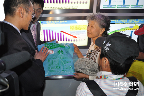 田外美代在一樓互動體驗區(qū)參觀時,對臺北參展的兩個案例特別感興趣,館長陳慶安特別向她介紹臺北市專用垃圾袋。她表示要將垃圾袋帶回東京,交給東京市政府參考,因為臺北的環(huán)保政策“做得比日本還要好!”陳慶安也特別代表臺北市長郝龍斌邀請她11月到臺北參加花卉博覽會,并贈送她花博一日券,田外美代一口答應(yīng),花博開展后,她要到臺北當“花博奶奶”。