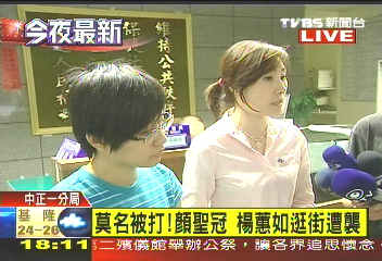 顏圣冠說(shuō):“我問(wèn)她為什么打人?她說(shuō)我打人不對(duì)嗎?你們欠我的!就繼續(xù)往前走,楊蕙如就擋住她,然后她就開始攻擊蕙如,把她的手抓傷,用指甲箝住她的手,所以我在旁邊就趕快打電話報(bào)警!