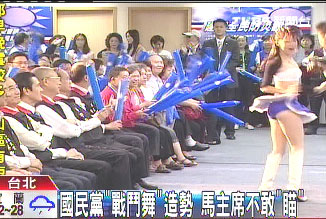 穿著超短迷你裙的舞者,在只隔馬英九主席不到半米的距離,蹦蹦跳跳一點也不怕走光,令人臉紅心跳。