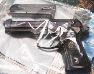 警察檢視后發(fā)現(xiàn),皮包內(nèi)裝了一把貝瑞塔九○手槍,彈匣內(nèi)有6發(fā)子彈,另外6發(fā)子彈用報(bào)紙包裹放在旁邊。皮包內(nèi)還有兩把螺絲起子,以及一些雜物,沒(méi)有任何與持有人身分有關(guān)的訊息。