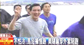 報道稱,馬英九真的是不怕冷,在舊金山陰雨綿綿、又濕又冷的清晨,馬英九則是穿著小短褲的招牌慢跑勁裝出現(xiàn)。
