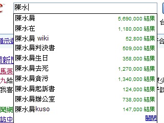 網(wǎng)友指出,以Google搜尋政治人物名字時,網(wǎng)頁就會自動跳出與這位政治人物相關(guān)的搜尋條件,以及多少筆數(shù)的搜尋結(jié)果,搜尋建議包括熱門事件或正負面觀感。以同樣方式在雅虎奇摩上進行搜尋,則會跳出搜尋建議,但無筆數(shù)。