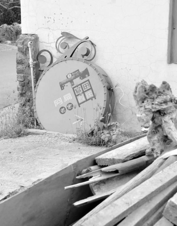 往前再幾分鐘的車程,就到陳水扁的老家西莊村。拐進一條無名的小巷,巷口的電線桿上掛有“官田西莊、阿扁老家”的綠色招牌,已是舊跡斑斑。到了另一個巷口,一個圓環(huán)形的“阿扁老家”招牌被扔在廢墟水溝邊上,而不是高高掛起。
