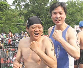 金溥聰認為這次賽程規(guī)劃很有挑戰(zhàn)性,“除自行車距離短了點,其他像湖水好冷,跑步爬坡很陡,很累,還不錯!碑斔诌_終點,知道“老葉”距離終點還早時笑說,“就怪他練太多啦!