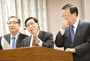 審查會邀請“考試院”、“司法院”、“法務(wù)部”及代表“行政院”的“人事行政局”報告,報告書內(nèi)容各自捍衛(wèi)立場,“考試院”更在場散發(fā)說帖,尋求支持,場外卻有“臺灣公務(wù)人員協(xié)會”穿梭,反對強(qiáng)制考績丙等定3%的立場。