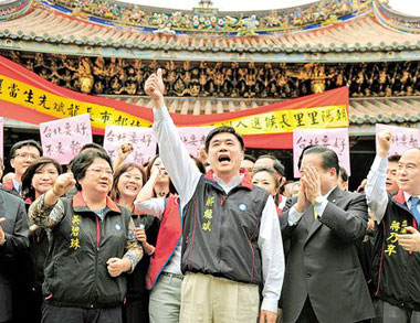 大批民眾拿著“臺北要‘郝’,不要‘蘇’”的標(biāo)語,力挺郝龍斌,“凍蒜(當(dāng)選)”聲不絕于耳,緊接著郝龍斌用閩南話演說,“我要向神明報告,過去三年誠心和認(rèn)真為臺北市打拼,祈求神明保佑,讓我繼續(xù)為市民服務(wù)!