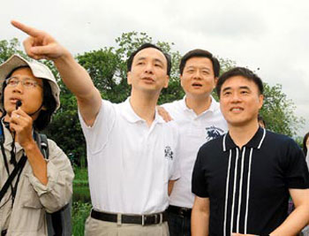 中新網(wǎng)5月31日電 據(jù)臺(tái)灣《聯(lián)合報(bào)》報(bào)道,臺(tái)北縣長周錫瑋30日邀臺(tái)北市長郝龍斌、新北市長參選人朱立倫訪視臺(tái)北縣浮洲濕地,為年底選舉造勢,互勉要把淡水河整治得更干凈。郝龍斌對三人合作形成“郝錫立(好犀利)”表示,“第一次聽到,不錯(cuò)呀!”,周錫瑋不忘補(bǔ)充廣東話叫“猴塞擂呀!”